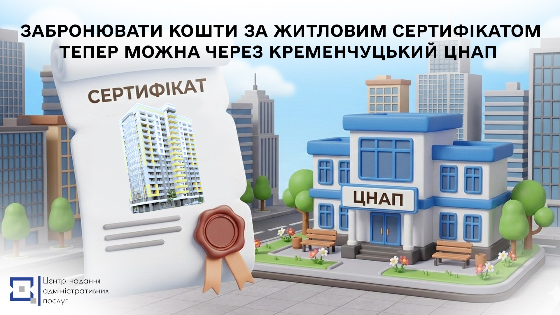 ЗАБРОНЮВАТИ КОШТИ ЗА ЖИТЛОВИМ СЕРТИФІКАТОМ ТЕПЕР МОЖНА ЧЕРЕЗ КРЕМЕНЧУЦЬКИЙ ЦНАП